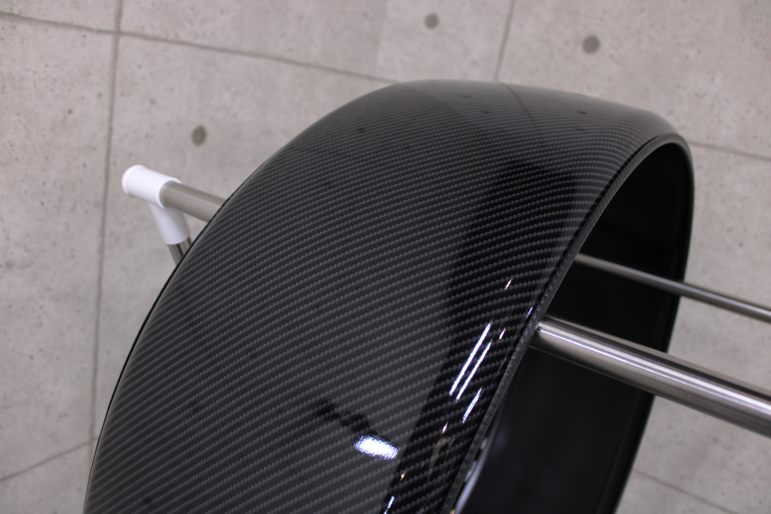 グロスカーボンがご希望でしたので、カーボンパターンの大きさや色味をメールでご確認いただき、カーボンパターンをラッピングフィルムに印刷した後、ラミネートを施したオーダーメードのラッピングフィルムにて施工させていただきました。