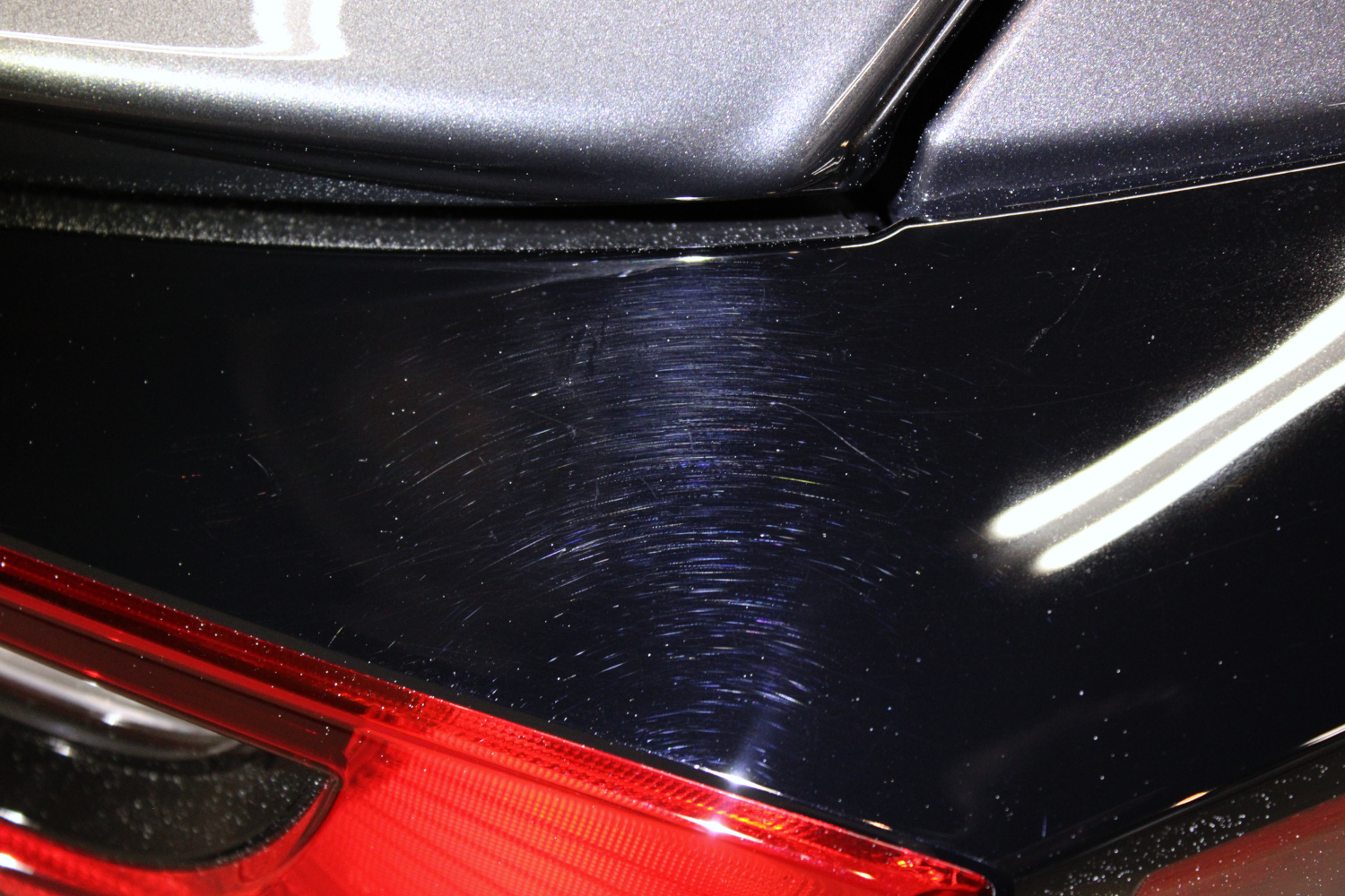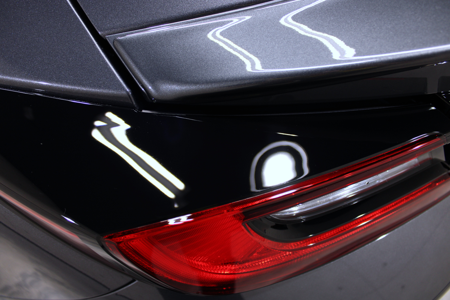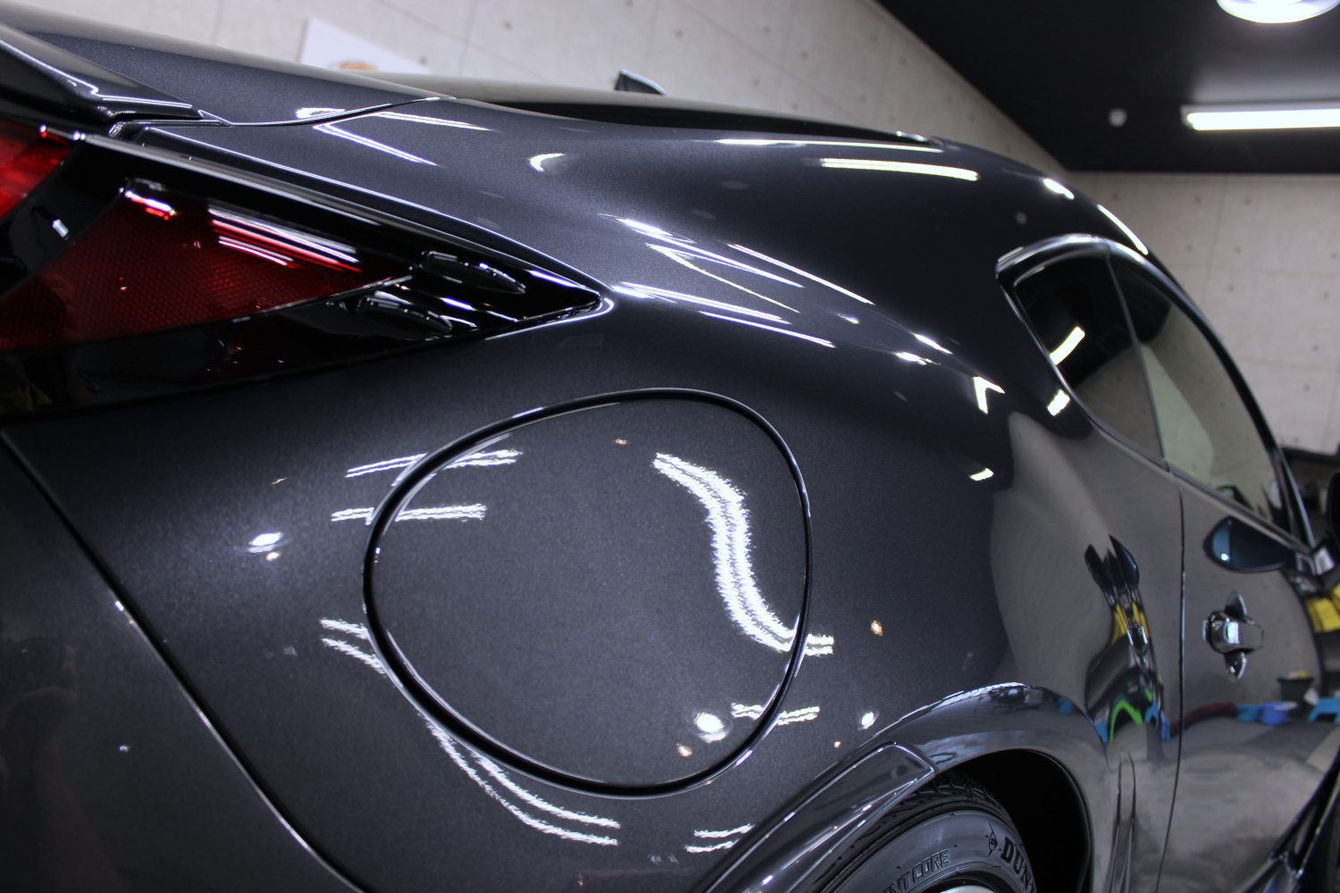 さて洗車後の車両を確認すると、ボディそのものに大きな傷やシミはありませんでしたが、トヨタ系テールライトの定番であるブラック部分の傷はあたり前の様にありました。また、ディフューザーなどにはシミの付着がみられました。磨ける部分においては、リボルトグループ独自の下地地処理「Revolt adjust system(リボルトアジャストシステム)」によって磨き上げ、磨けない部分においてはケミカルによって、本来の状態に戻すと共に艶を最大限までひきださせていただきました。