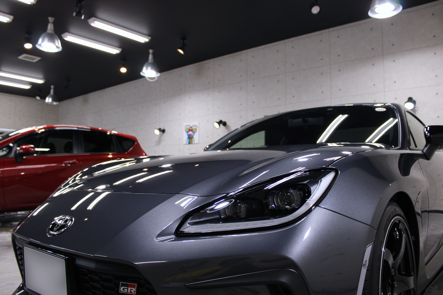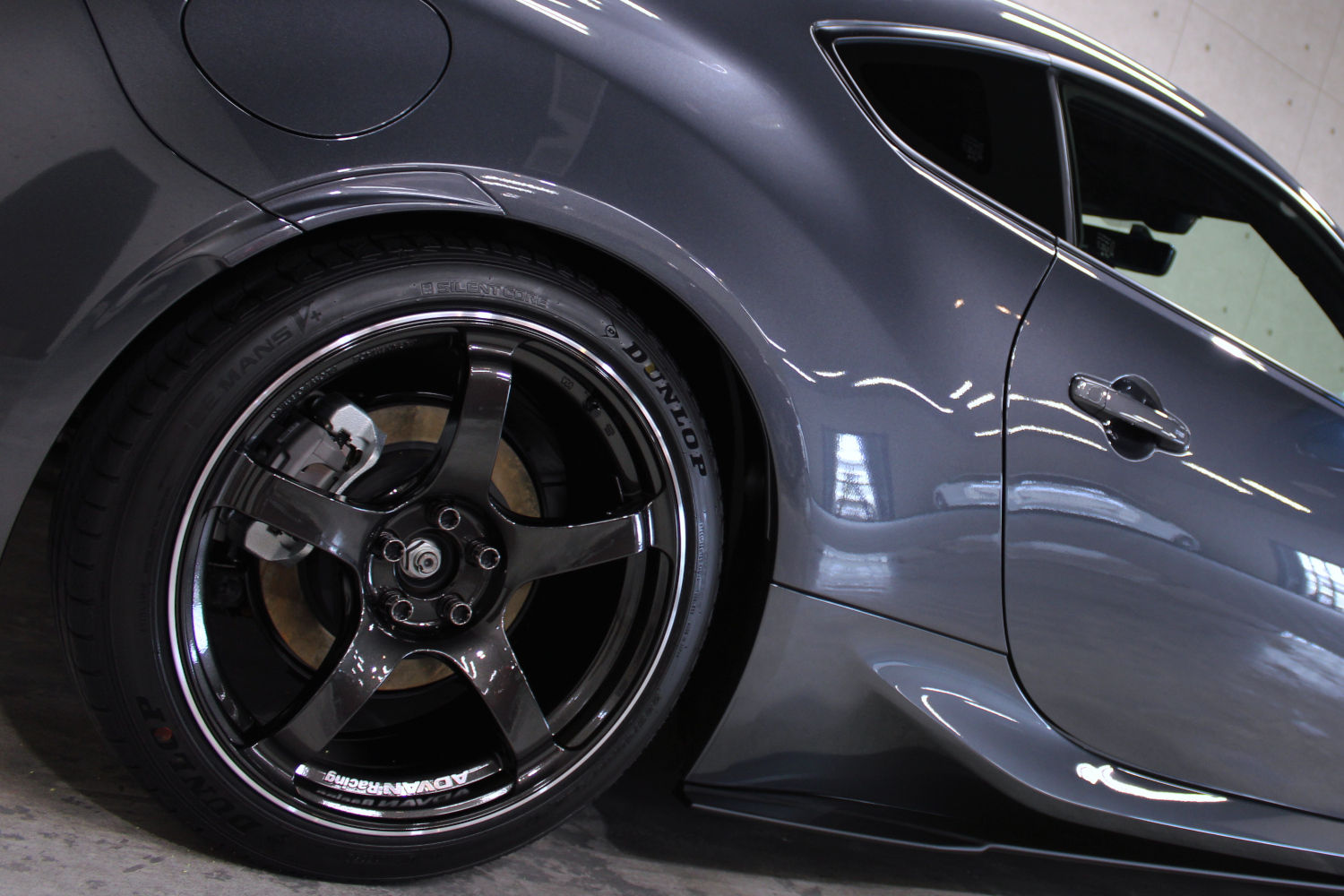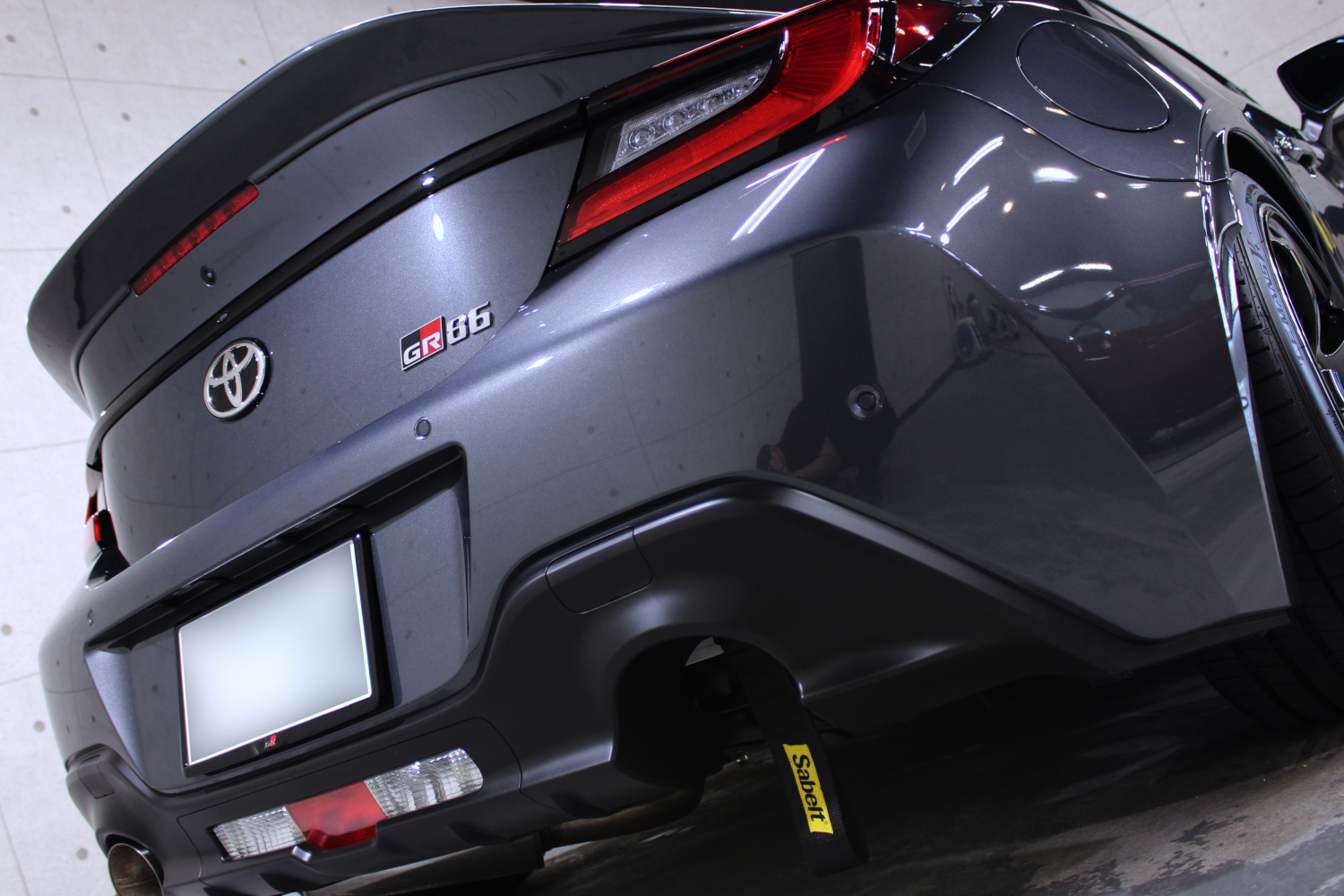 GR86は、走りへの情熱と洗練された日常を兼ね備えた一台。 オーナー様は納車後すぐにHKS車高調を取り付けの他、ADVAN/TC-4ホイール、フジツボ/A-RMマフラー、GROWフロント/サイドディフューザーと一通りカスタマイズをされた後、当店にご来店いただきました。
