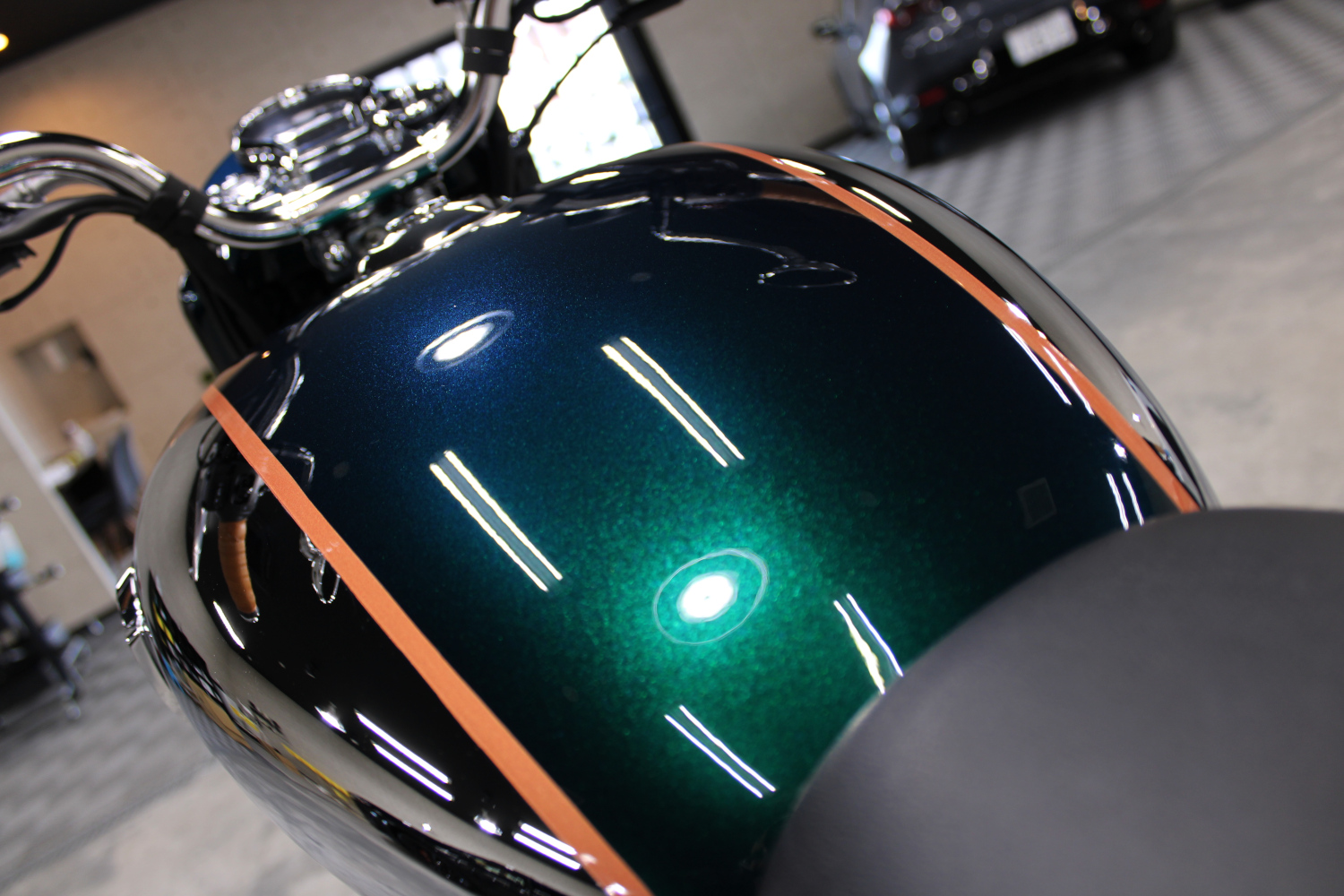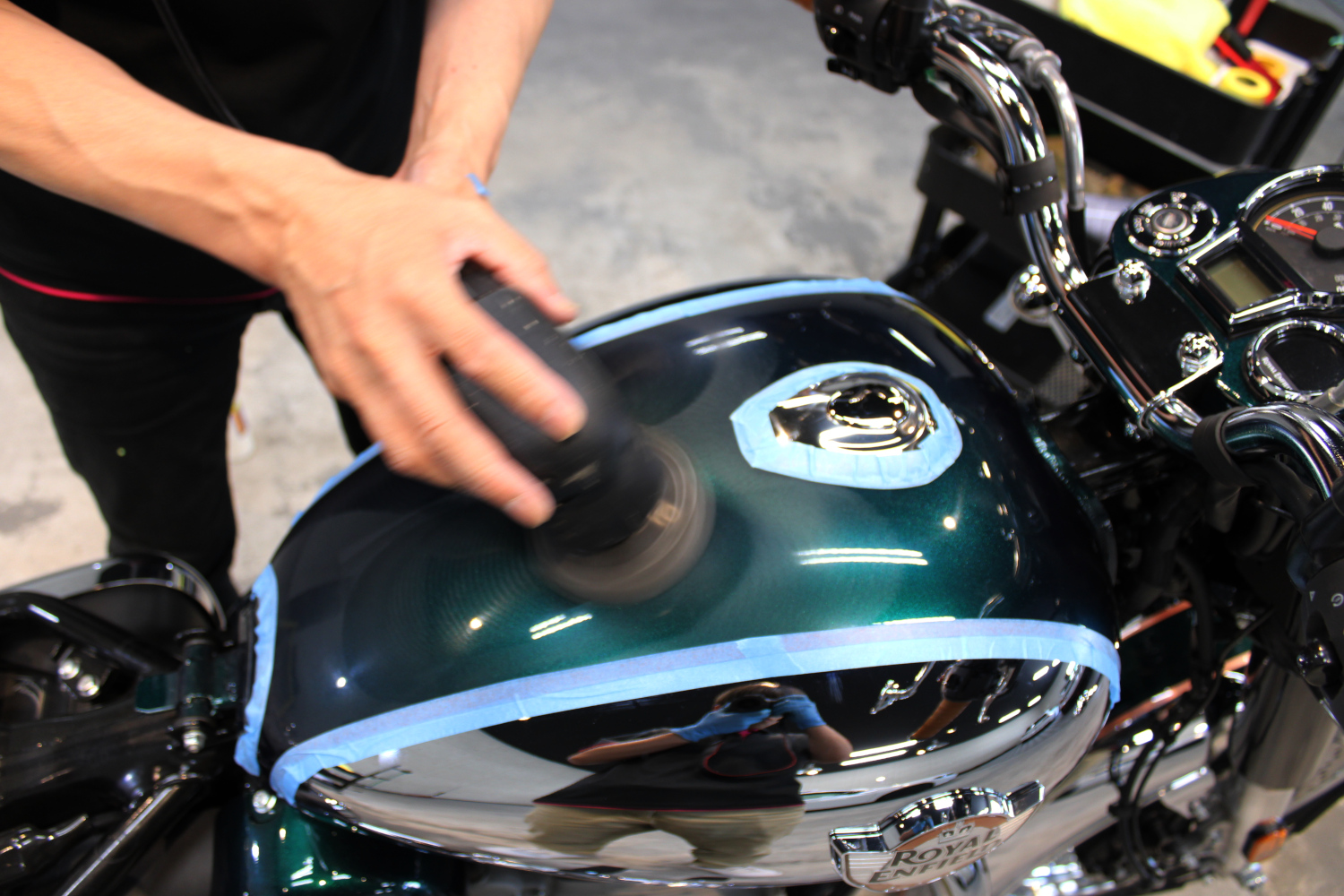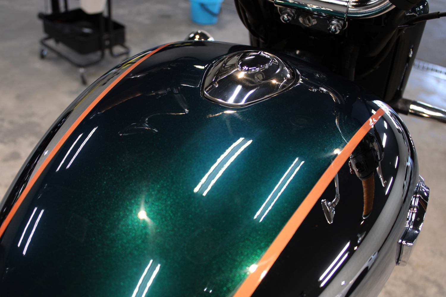 ガソリンタンクなど塗装にモヤが見受けられましたので、磨きによって綺麗にさせていただきました。