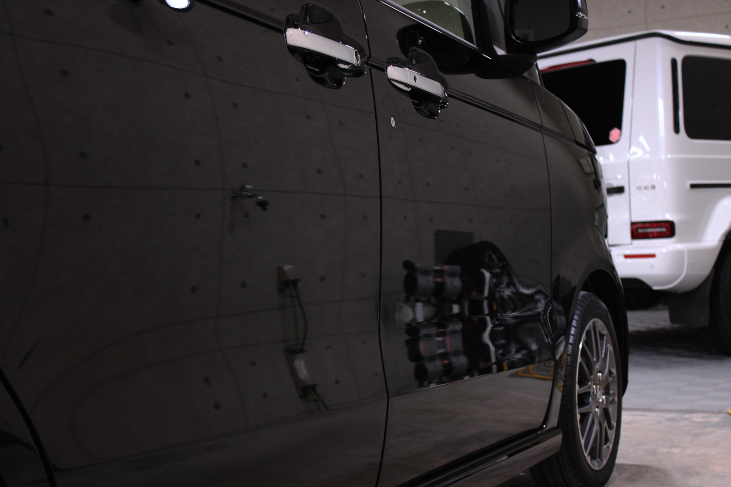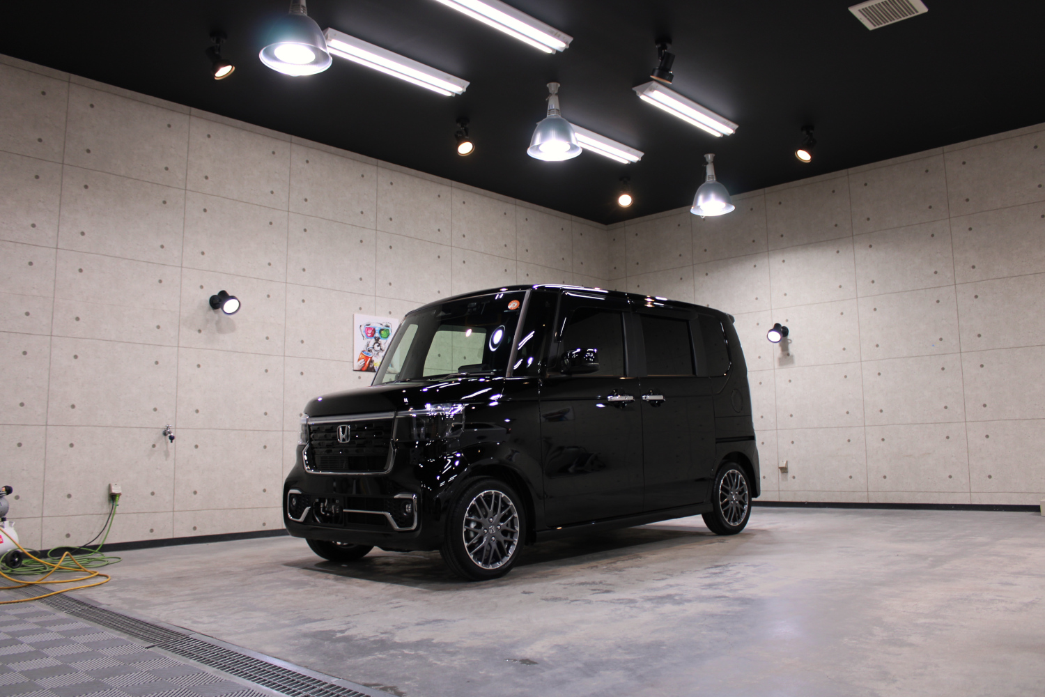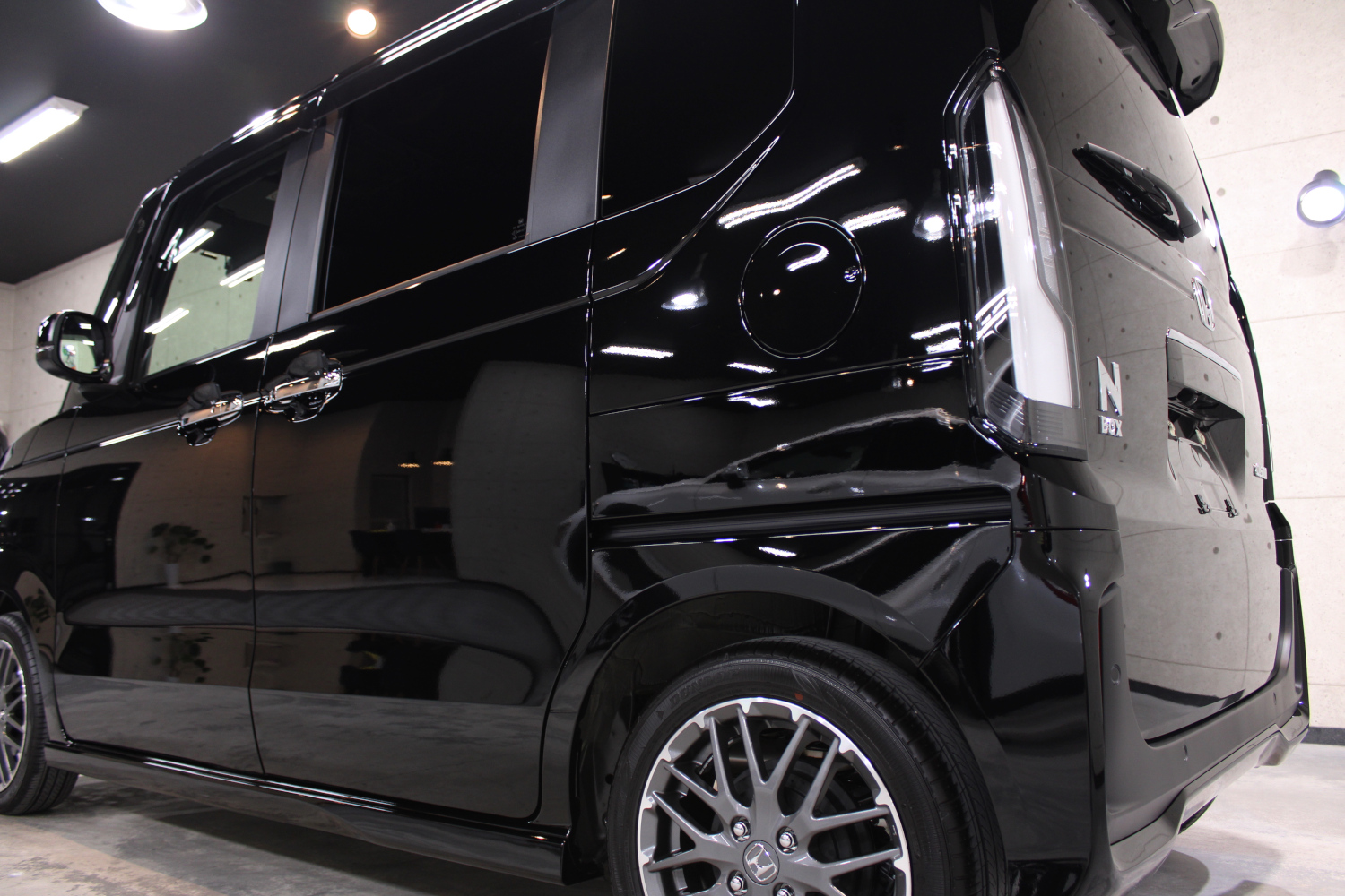 N-BOXなどホンダの軽自動車の塗装は非常に癖が強く、特に今回の【クリスタルブラックパール】は磨き屋泣かせのボディ―カラーとなりますが、リボルトグループでは十分なノウハウと各種設備によって綺麗に仕上げることが可能です。
