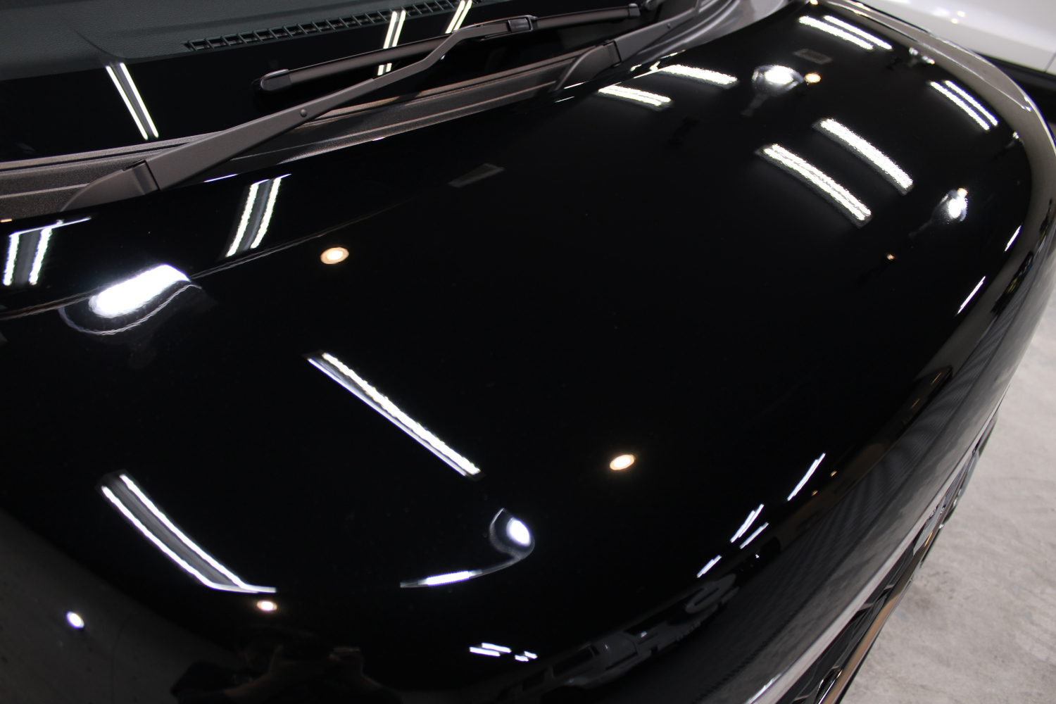 「リボルト・プロ」は、ベースに低分子型の完全硬化型ガラス被膜を形成させて、その上からトップコートを定着させます。ベースコートおよびトップコート共に紫外線軽減効果のあるコーティング剤となりますので、少しでもお車を紫外線の脅威から守ることが可能となります。施工時は温度と湿度に注意し、圧倒的な被膜感を感じながら施工を実施、特殊LEDパネルを当てながら、ムラなく仕上げさせて頂きました。