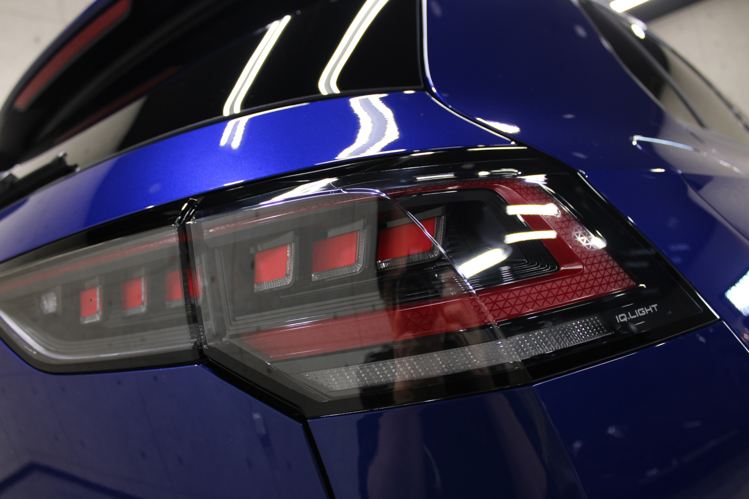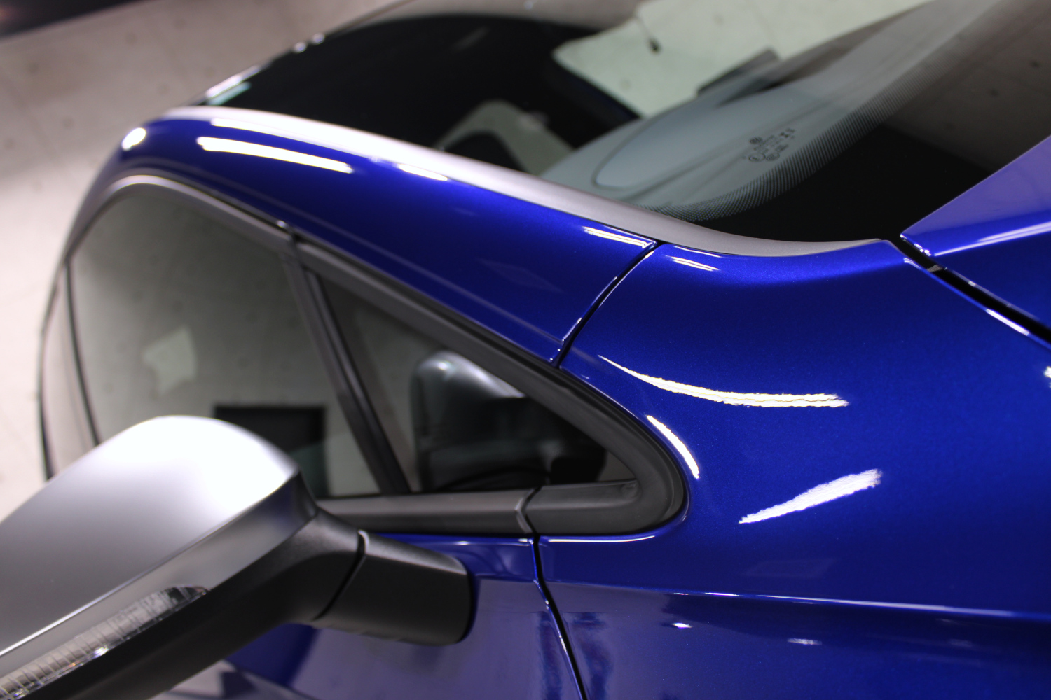 まずは入庫した車両の洗浄を行います。細部は筆等を用いて汚れを除去させていただいた後、ボディに付着した鉄粉を除去させていただきました。洗車後の状態は、新車ですが部分的にスクラッチキズが見受けられると共に、ポリッシャーが当てられた痕跡も見受けられます。