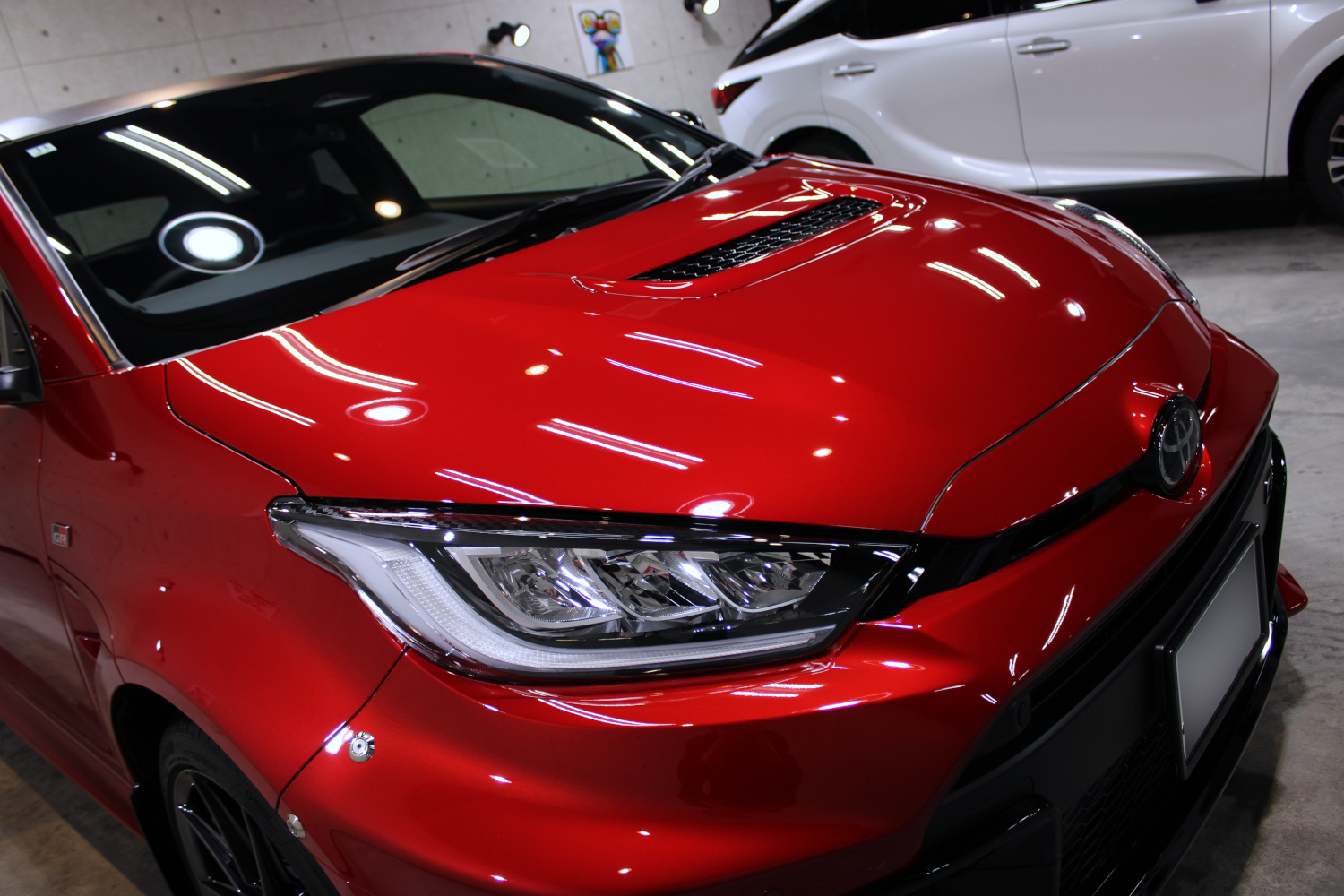 当店では「ディーラーにて施工できないカーボンルーフへの施工も可能」ですので、沢山のGRヤリスやGRカローラにご入庫いただいております。最も心配なのはコーティング施工に伴いツヤ感アップですが、下記の写真の通り殆ど未施工状態と変わりはありません。(若干黒味が増す雰囲気がございますが気になるものではございません)