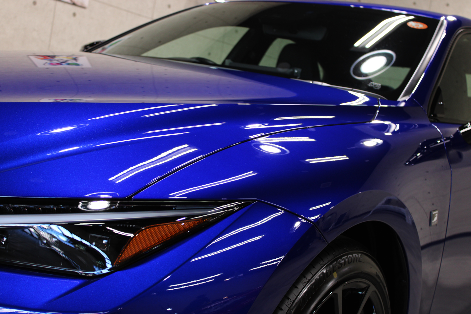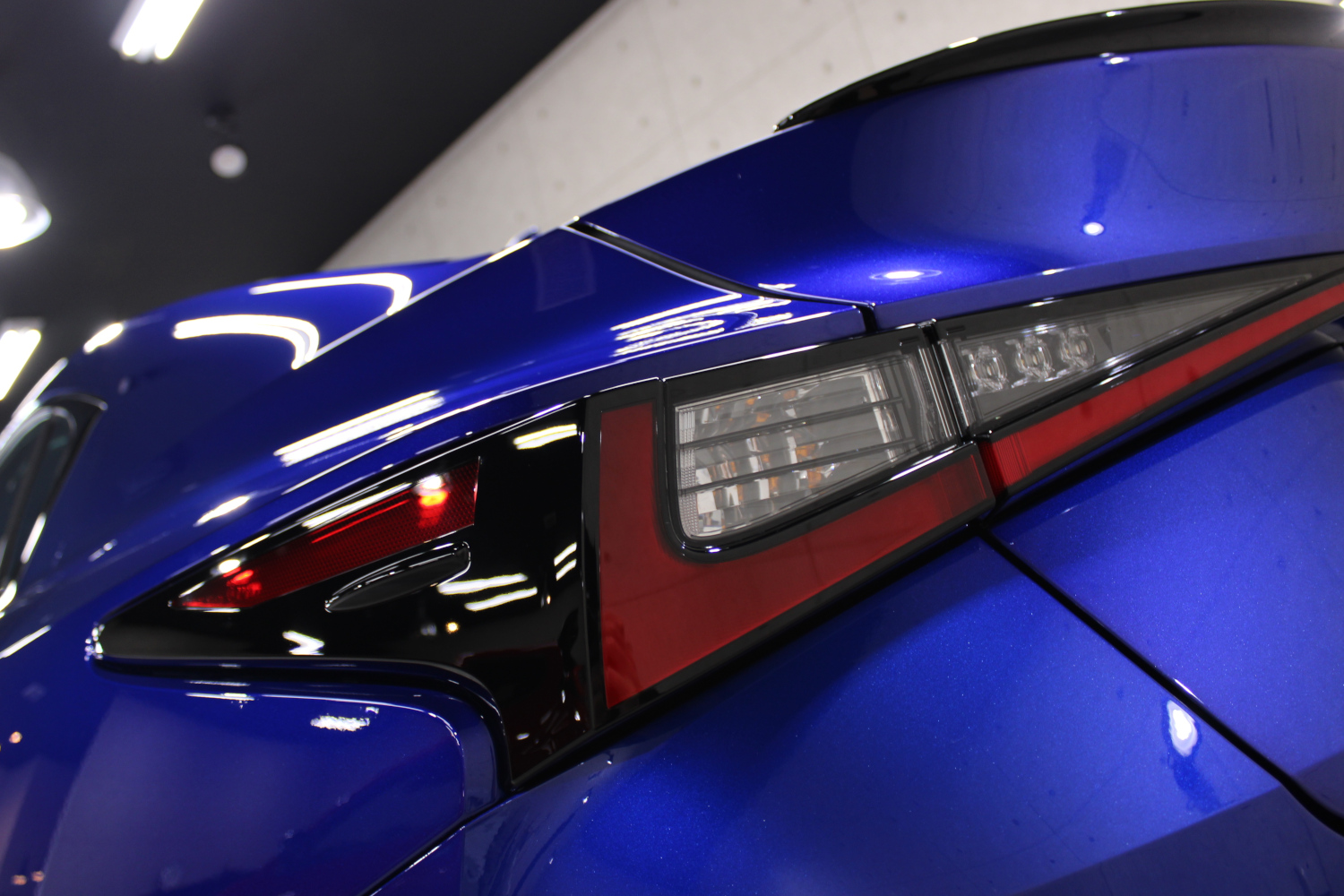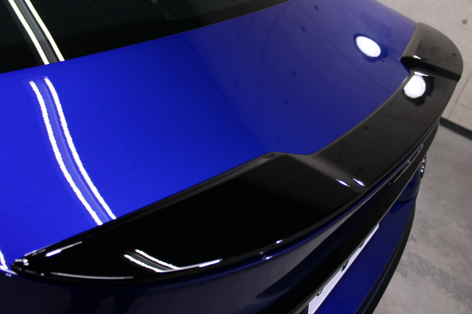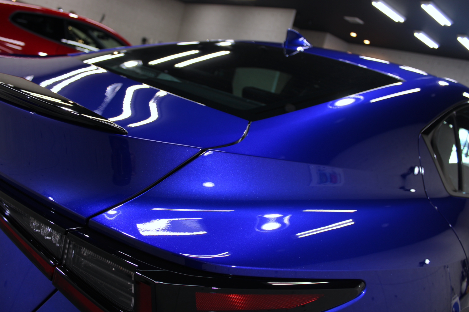 ガラスコーティングの「リボルト・プロ」の性能をそのまま引き継いだ上にセラミック成分を配合し、耐スリ傷、撥水性能、汚れ軽減、被膜定着、シミ軽減が強化されています。コーティング被膜はベースコート、トップコート、オーバートップコートからなる3層コーティングとなり、重厚感のある深い艶が特徴です。硬化が非常に速いため施工時は温度と湿度に注意し、圧倒的な被膜感を感じながら施工を実施、特殊LEDパネルを当てながら、ムラなく仕上げさせて頂きました。