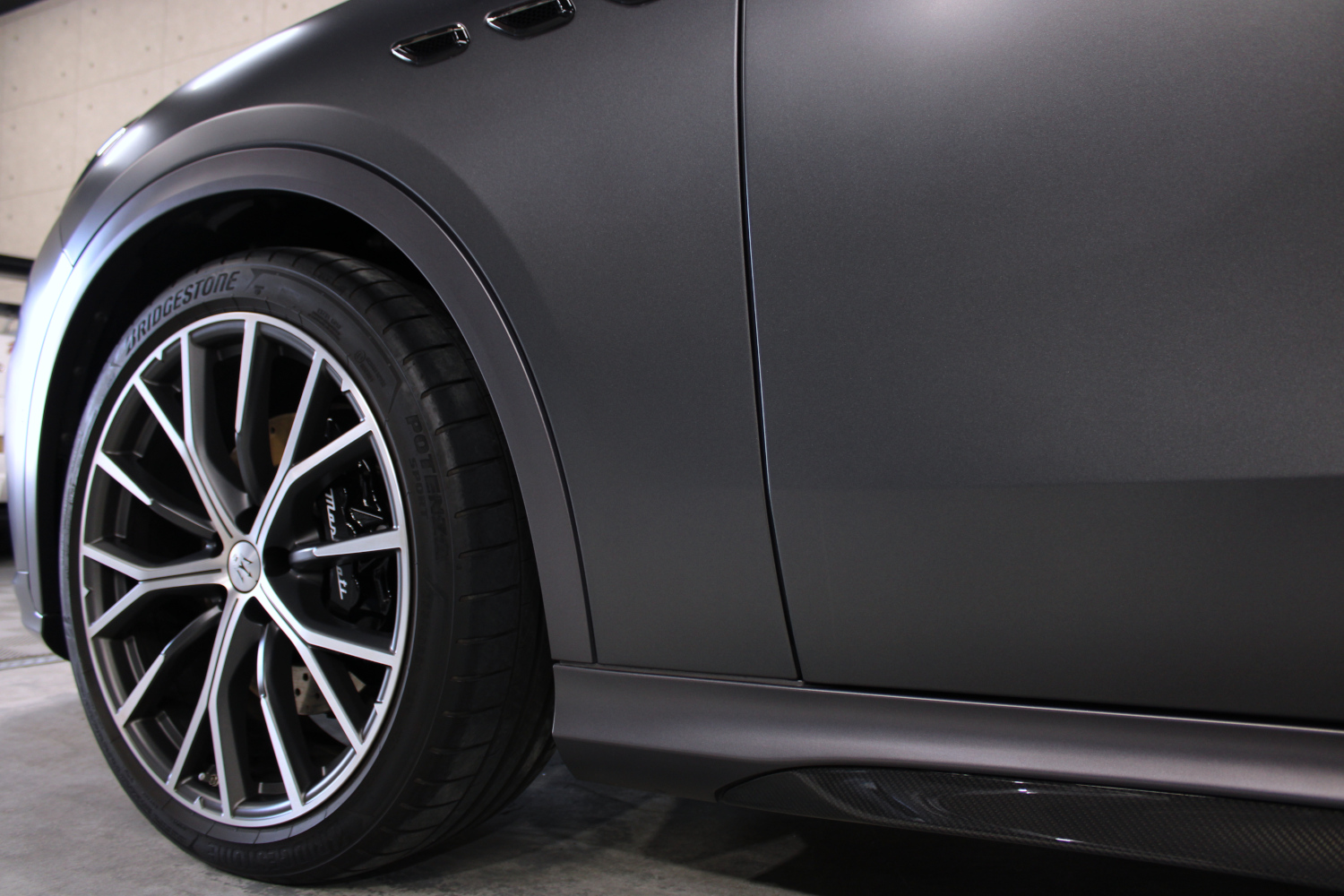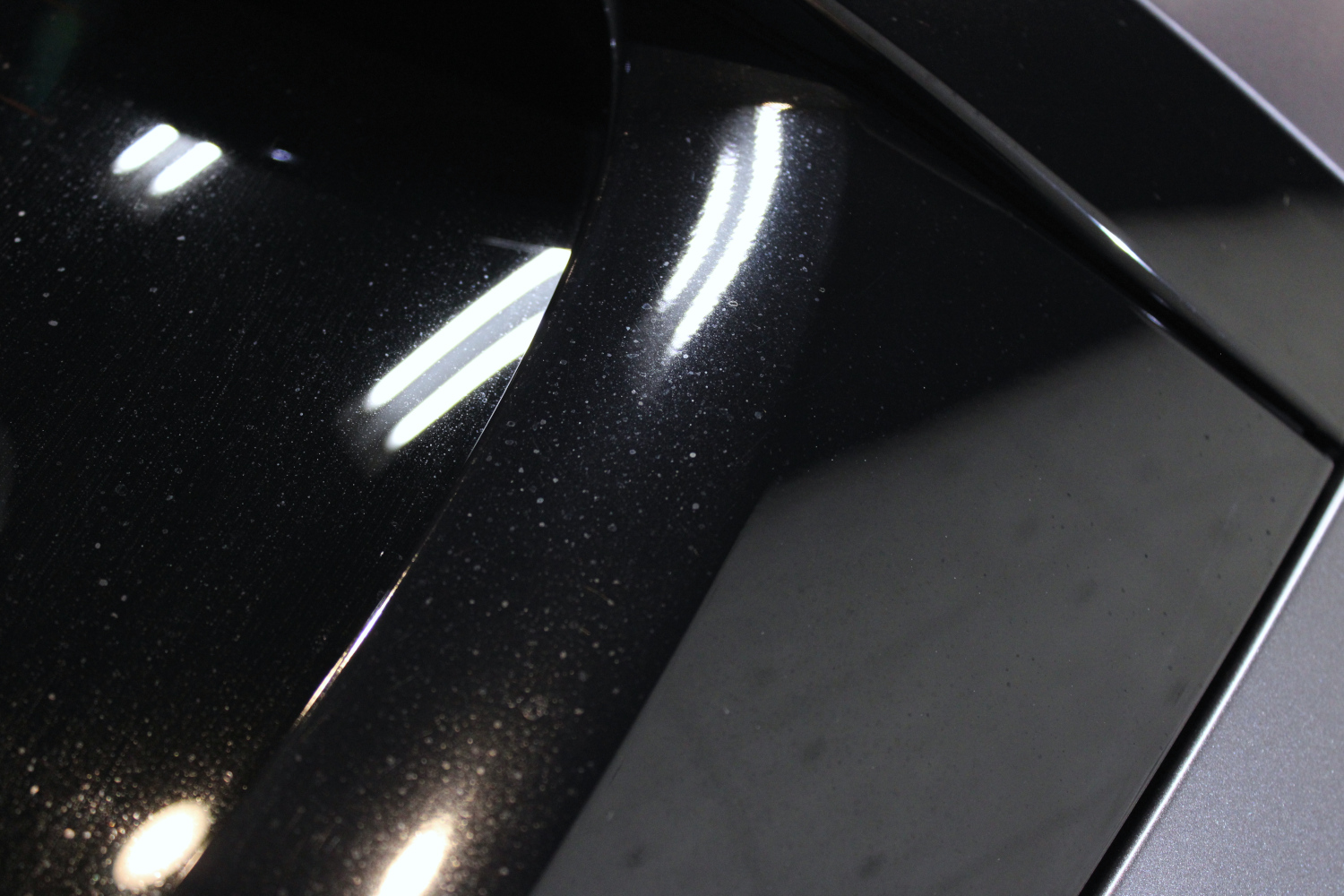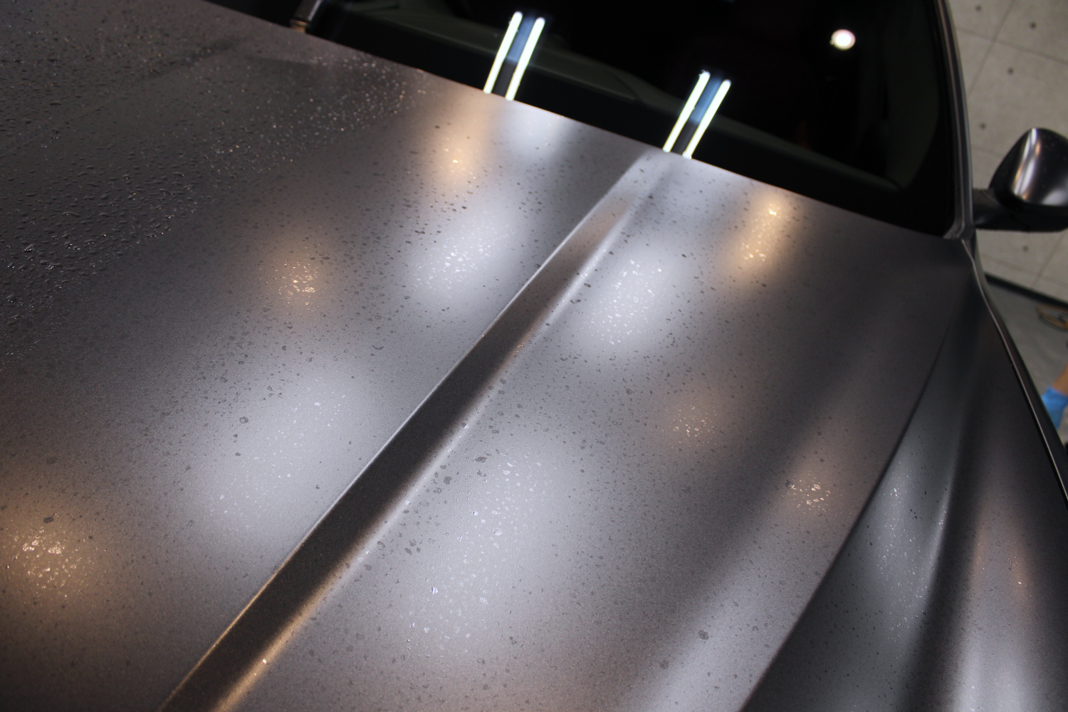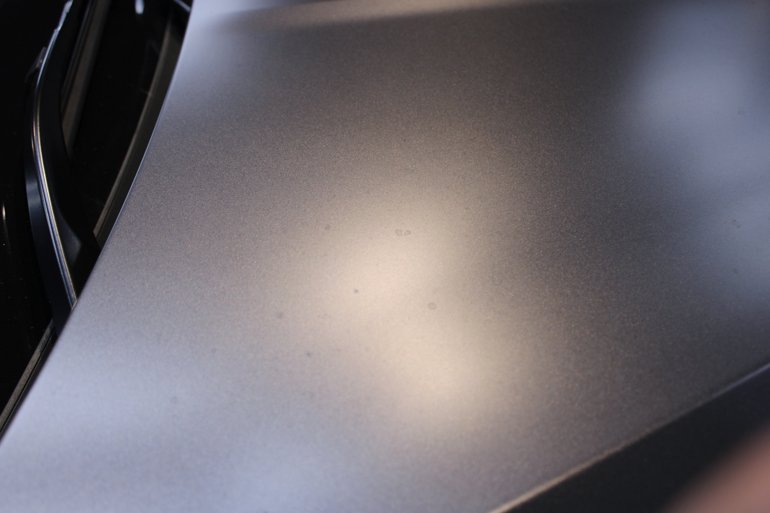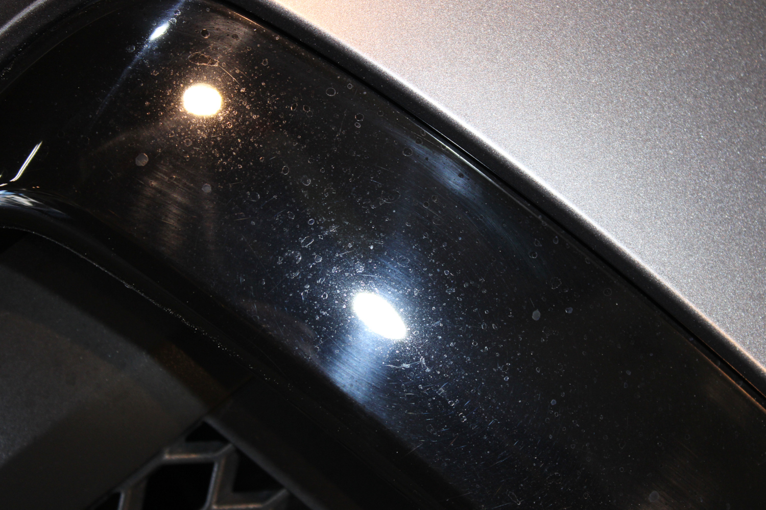 洗車後の車両を確認すると、マットボディのパネルには無数のシミが付着しています。