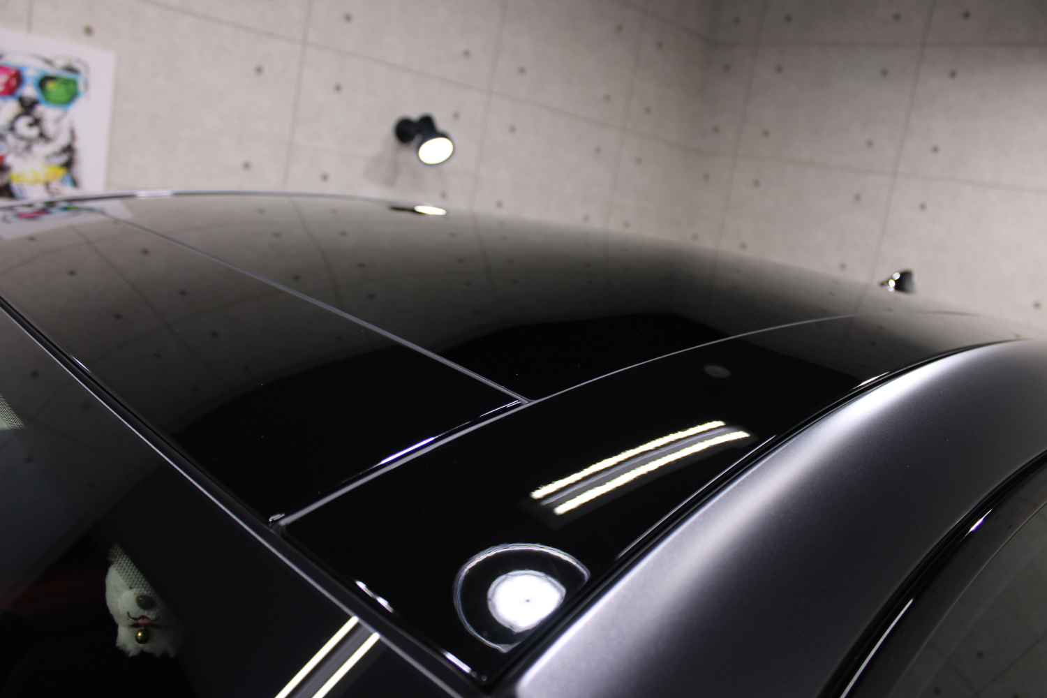 ベースコートおよびトップコート共に紫外線軽減効果のあるコーティング剤となりますので、少しでもお車を紫外線の脅威から守ることが可能となります。施工時は温度と湿度に注意し、圧倒的な被膜感を感じながら施工を実施、特殊LEDパネルを当てながら、ムラなく仕上げさせて頂きました。