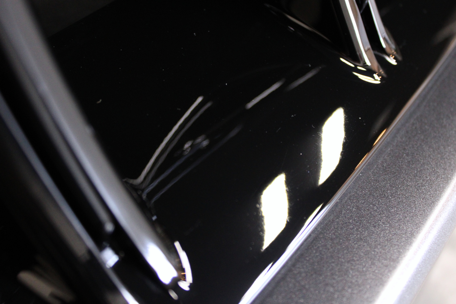 窓のモールやピアノブラックのグリル等につきましては研磨を行い出来るだけ本来の状態に戻すように下地を整えさせていただきました。
