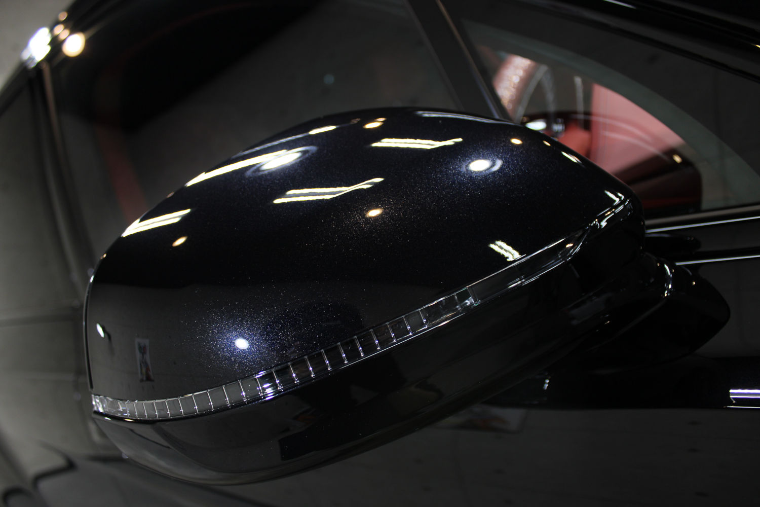 ボディを下地処理「Revolt adjust system(リボルトアジャストシステム)」によってを磨いた後は、脱脂洗車を行い、コーティング施工に移ります。コーティング剤はガラスコーティング「リボルト」を施工させていただきました。「リボルト」は完全硬化型ではありませんが、ベースコートとトップコートの2層コーティングを行います。このベースコートとトップコートは塗装に固定密着させる効果と、外部からの汚れの保護に効果を発揮いたします。